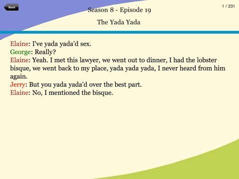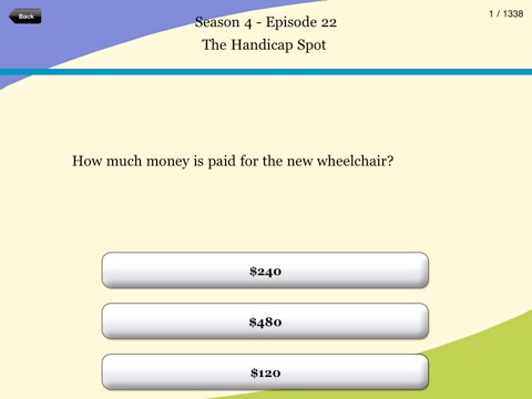 I LOVE Seinfeld but was completely disappointed in this app. you need to go through 1300 questions to even finish the quiz and the questions are completely random and make no sense. Needs some serious updates to be worth downloading.