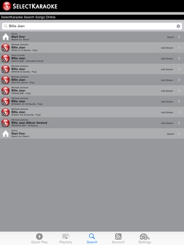 Play Karaoke anywhere with an internet connection. Share the experience with your family and friends. Over 50,000 songs available from SelectKaraoke to Stream online. All the songs listed on this subscription are licensed for streaming at venues.