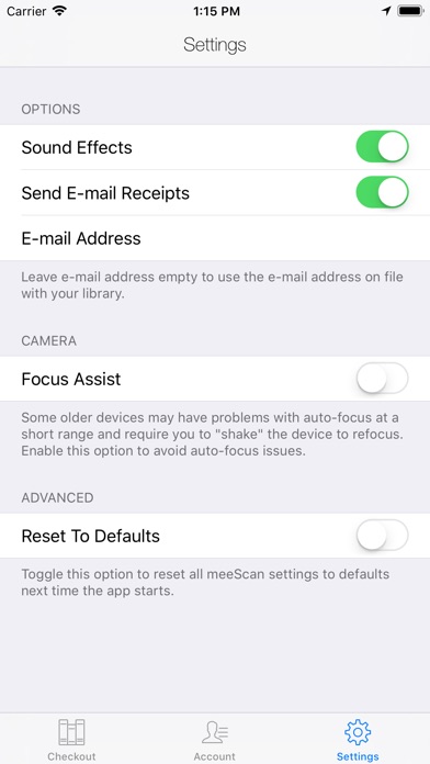 Check out library items using your phone or tablet. Just scan the bar code, bring it to the deactivation station and take it home. (Deactivation not required at the law library.)