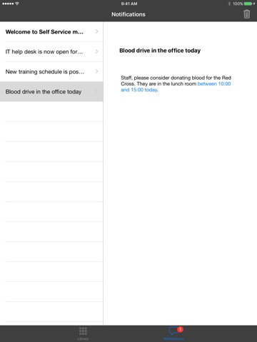 Using the intuitive interface, you can browse and install trusted apps and books from your organization, update configurations, and receive real-time notifications for available services without having to contact IT.