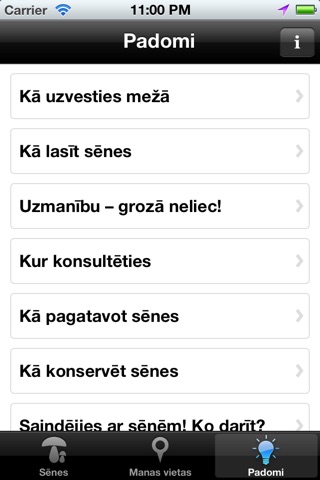 Aplikācijā apkopoti visu Latvijā sastopamo sēņu attēli, nosaukumi un apraksti.
