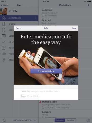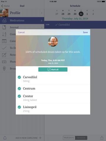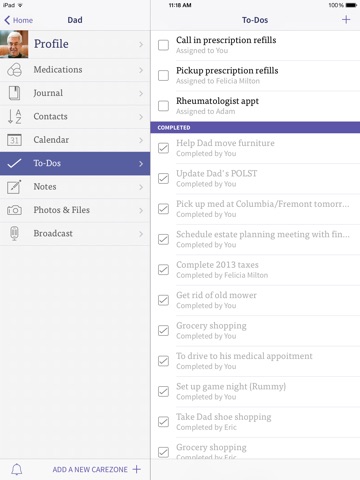 Share secure access with family and caregivers to be sure everyone is in the know when it comes to tasks, appointments, medications, and updates.