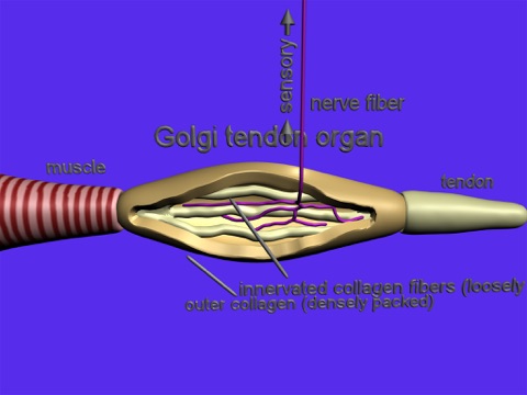 In our project we first show in a 3D muscle model, where the muscle spindle and the Golgi tendon organ are located. Then we look more closely at the Gol- gi tendon organ, revealing its internal structure - the outer compact collagen sheath and the inner loose- ly packed collagen fibres and the nerves innervating them.
