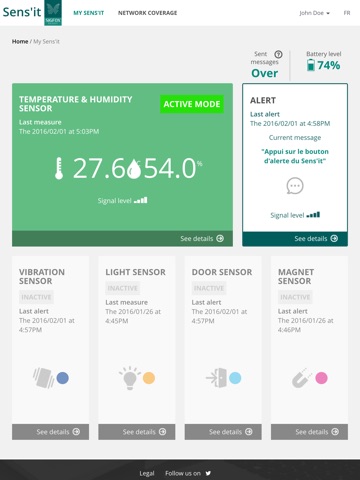 Sensit works on SIGFOX global network for the IoT. More details on www.sigfox.com