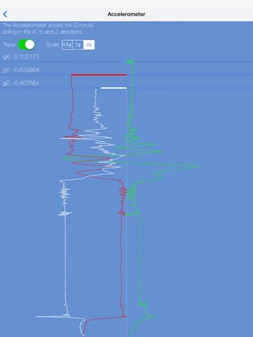 - See the g-forces on the X,Y,Z axis and see them traced over time.
