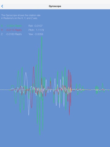 - Watch the rate of rotation over the X,Y,Z axis plotted over time.