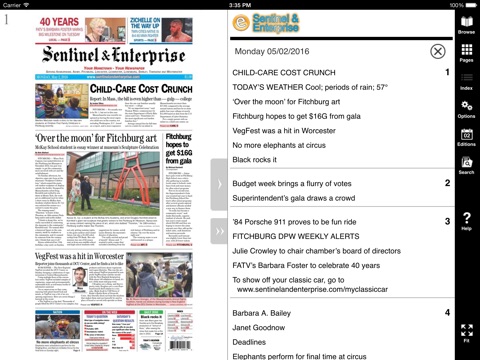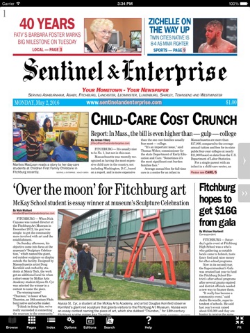 The Sentinel & Enterprise covers local news in Fitchburg, Leominster and nearby towns in northern Worcester County and northwest Middlesex County. Our eEdition iOS app lets subscribers read the Sentinel & Enterprise on your iOS device, with all the stories, ads and photos shown exactly as it appears in print. The app uses the iOS multi-touch interface to provide fast and easy navigation and natural paper-like reading experience.