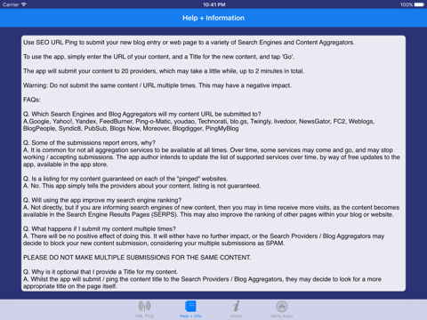 You can enter any word letter or gobligook and it will say it submitted to the search engines. Makes me think it is possible its pure fraud app pretending to time out for submission but really isnt doing a thing I paid two bucks. Figured decent chance its not real. Like to see some proof they actually submit and would rate higher