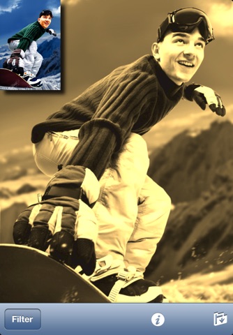 Creating sepia shine images is quick and easy. Take a photo with your camera and apply the sepia filter on the image. Share your sepia shine images on Facebook, Twitter and other social nets. Send an email with the image attached to it or save it in your photo album.