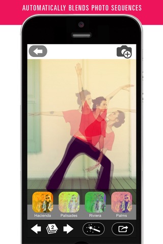 Photo Sequences, action shots, blend images, make your own ghost, control the opacities of each shot, add filters and share. Endless possibilities!