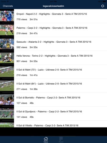 Serie A Tube collects official Youtube channel of the teams of Serie A 2015 - 2016 and the Football League Serie A.