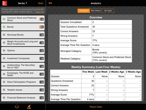 With this dynamic app, you can easily customize your study plan by flagging questions as you go. You can even create a quiz composed solely of these flagged questions. Detailed analytics allow you to review your quiz history and personalized statistics including your weekly progress and category strengths and weaknesses.