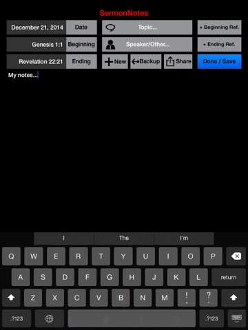 SermonNotes provides a simple and easy way to use your iPad, iPhone, or iPod touch to input notes during sermons, classes and Bible studies. It’s paperless and includes the following features: