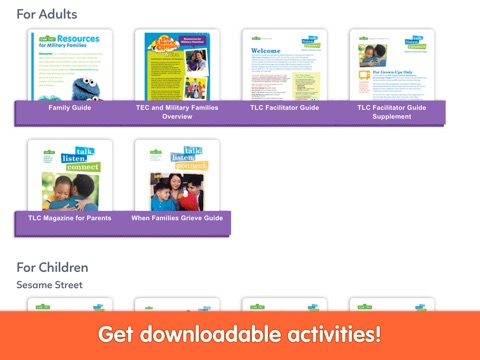 Developed for parents and caregivers: The Sesame Street for Military Families app puts all of Sesame’s bilingual (English & Spanish) resources for military families right in your pocket! Use your mobile device to access engaging videos, articles, storybooks, parent guides, and more to help you support your preschool and school-aged children as they encounter transitions common to military families.