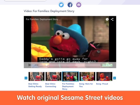 • This app and its materials are an extension of Sesame Workshop’s ongoing efforts to support our troops and their families. Related materials include the Feel Electric! and Big Moving Adventure apps for military children, and social media including Facebook.com/SesameStreetForMilitaryFamilies.