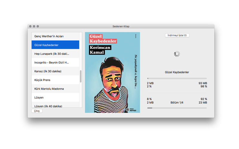 Seslenen Kitap uygulamasının içinde ücretsiz kitap örneklerini ve Seslenen Kitaptan satın aldığınız kitapları bulabilirsiniz. Bu kitapları cihazınıza indirebilir ve cihazınıza indirdiğiniz kitapları internet bağlantısına ihtiyaç duymadan dilediğiniz yerde dinleyebilirsiniz.