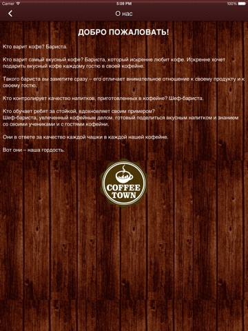 Используя мобильное приложение Кофе Таун, Вы можете находить ближайшую кофеточку, заказывать понравившуюся продукцию, быть в курсе всех акций и событий. Приложение действует только на территории России.
