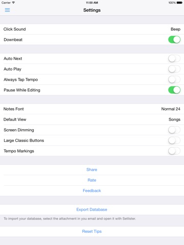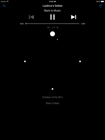 What makes Setlisters metronome stand out from the other metronome apps is that Setlister provides a nice graphical metronome applying light flash clicks to all beats in a measure. That being said, imagine playing with your band without those clicks and instead using the flashing light from your iPhone or iPad to keep track of time.