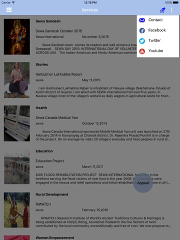 Sewa International Mobile applications allows users to know about the efforts and services of the sewa international charitable organisation in consolidated manner. It also allows users to contact the organisation efficiently. And it also allows user to post comments on the various activities achieved by the organisation.