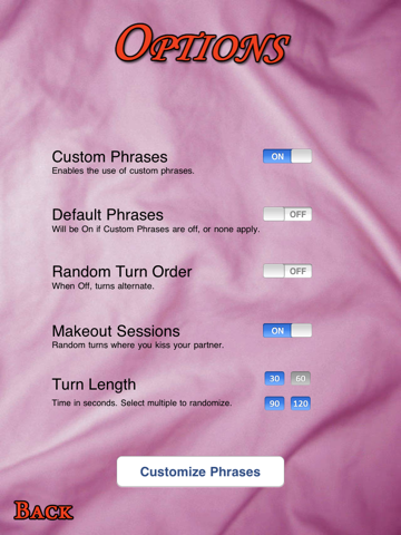 * Tons of Options - Set the turn length, order, toggle makeout sessions and more!