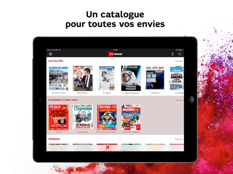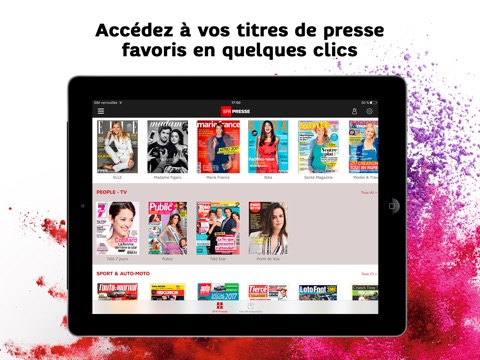 Accédez à un catalogue* inédit de magazines et journaux : Actualités, Presse régionale quotidienne, Economie & High Tech, Féminins, People-TV, Sport & Auto-Moto, Culture & Divertissement, Décoration & Cuisine et Jeunesse