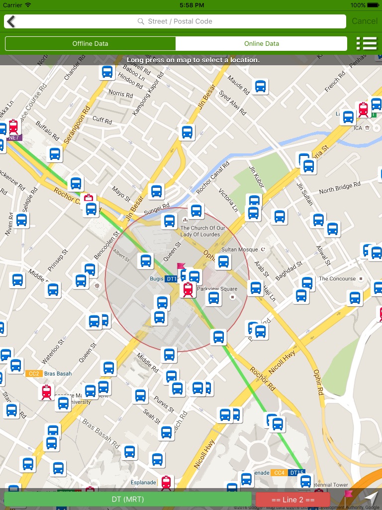 » Offline Journey Planner, able to filter by MRT, LRT, Bus and Irregular Hours Bus Services.