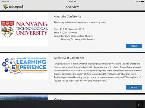 Themed “Shaping Future@Universities” , this conference is about what universities are doing now and what we intend to do to shape the future environment in which students in Singapore learn. It is firmly focused on a vision of the future in which educational technology is adopted and integrated in the everyday experience of students and thereby enhancing and improving the quality of learning.