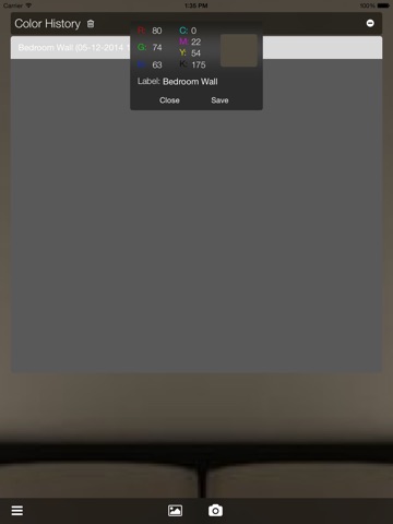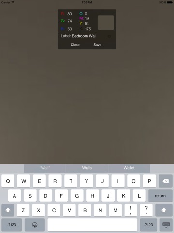 Shade can easily help you with that, simply take a picture of the wall, name it so you will remember what the color is of, bring your iDevice with you to the store, bring up the Color History, tap on your color, and start matching!