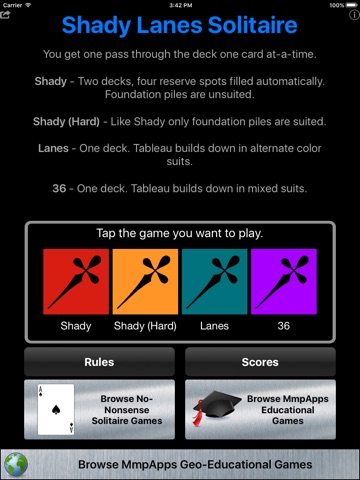 Four classic solitaire games. Free to play. No in-app purchases.