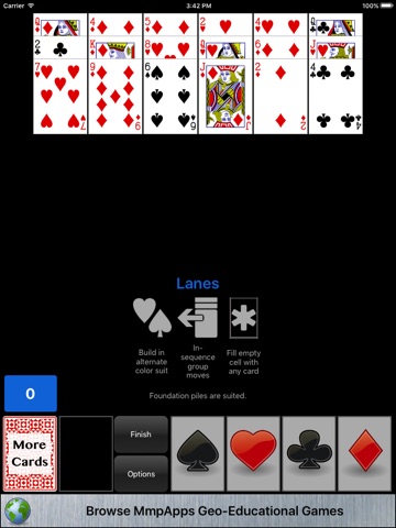LANES - A one deck game with alternate color suit building.