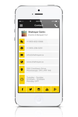 - Touch to Call feature and full Contact Information such as email, website, location and hours of operation