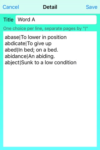 You can use it as a primitive flashcard app. Just enter the front and back of a flashcard as a single choice separated by "|" character.