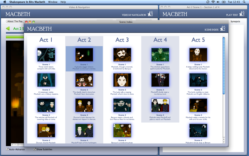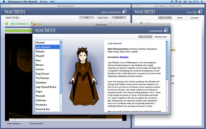 Read, watch and listen as Shakespeare In Bits brings to life the tragic tale of the murderous Macbeth in one complete multi-media experience on Mac.