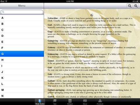 Well I was able to look up Termagant and that makes the app ok. However no search returns anything and there is no quick scroll within letter. Termagant - (TERM-a-gant) describes someone of violent temper who is always easy to goad into a fight, or always read for some kind of conflict.