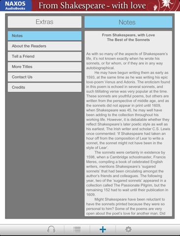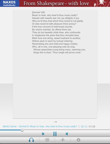 William Shakespeare’s ‘sugared sonnets’ circulated privately amongst his friends and colleagues for many years, but the public had to wait until their publication in 1609 to enjoy these masterpieces on every aspect of love. Whether it’s fidelity, obsession, jealousy or the love of friends, Shakespeare seems to know about it all. To celebrate the 400th anniversary of their publication, a rich variety of actors were brought together by Naxos AudioBooks to show the many different ways in which these sonnets can be interpreted. This award-winning recording now forms the present app, complete with all the texts.