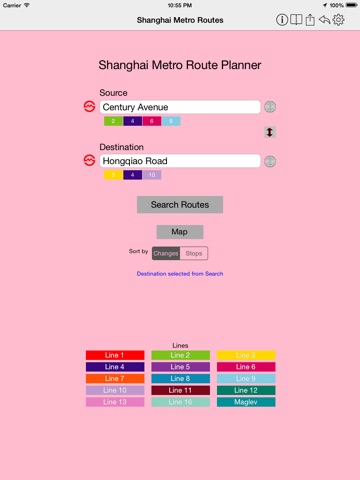 This app helps you find the Metro train routes which can be used to travel from one location to another in Shanghai city. The app also displays the Metro Map.