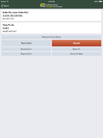 * Voice translation - click the speak button to say the addresses in Mandarin