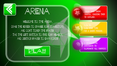 Play in the Arena to rack up as many points as you can by evading and destroying enemy shapes. Gather Gems to unlock more powerful weapons.