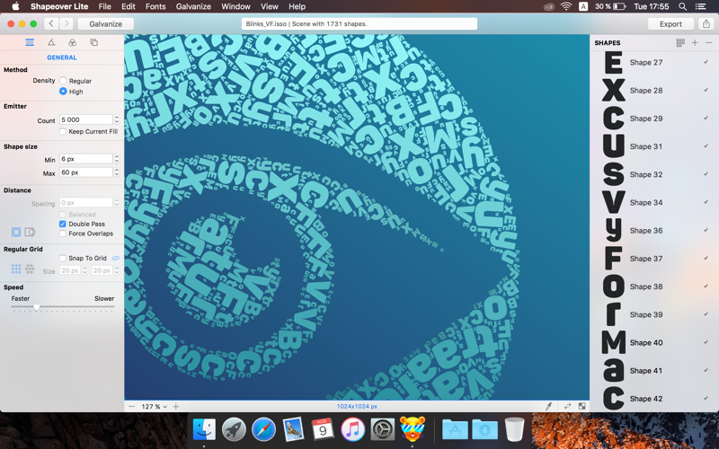 Shapeover is a unique tool for artists and designers, allowing creating artworks by means of filling (galvanization) of an image with shapes.