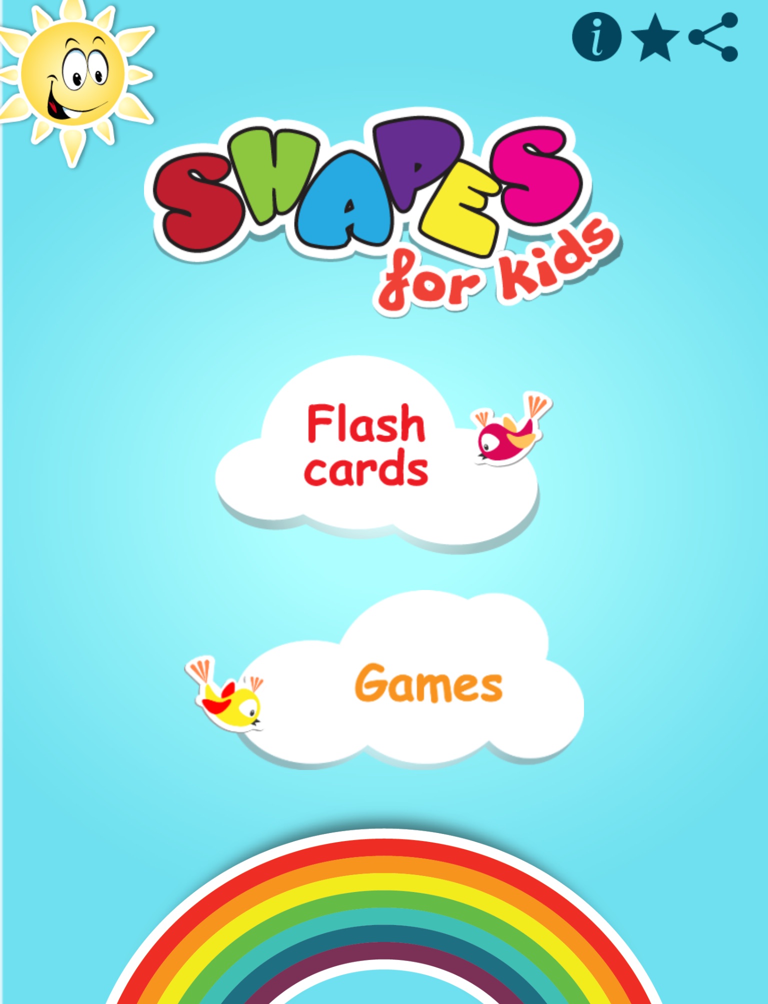 Your tiny tots easy guide to learning Shapes. This application uses interactive flashcards and games to help your kids and toddlers learn 2D and 3D shapes using bright and colorful real life objects and images.