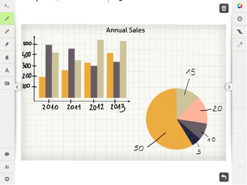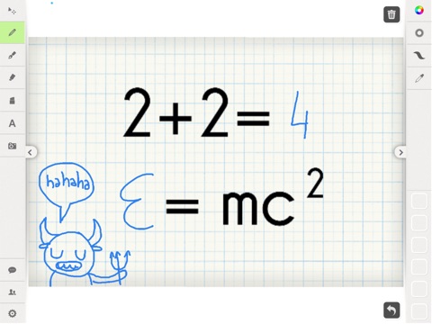 Share Board includes multiple drawing tools (Pen, Marker, Highligher), editing and scaling features, session save and log, the ability to upload and edit photos and text and features to share any session via email or Facebook. Assign session names and icons. Even connect your iPad to a projector to display your work for presentations.