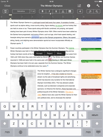 • Comprehensive text and paragraph formatting: font size and face, text color and highlight, paragraph alignment and line spacing