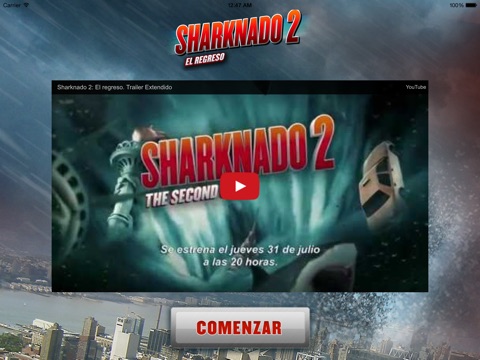Al igual que en el exitoso film Sharknado 2: El Regreso, podrás experimentar la sensación de estar dentro de un tornado de tiburones. Filma cualquier situación y luego añade el Sharknado. Podrás compartirlo con todos tus amigos a través de las redes sociales.