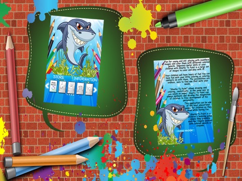 “Sharks To Paint” it lets draw and paint in a real way as well as you do it on a peace of paper. Sharks To Paint always can motívate and develop the children`s imagination for a free develop of their personality.