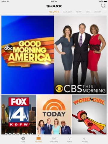 Put the "smart" in the palm of your hand with Sharps exclusive SmartCentral Mobile app. Now, virtually everything you do on your Smart TV can be done from your tablet or smartphone. Search and discover new content without interrupting what youre watching and launch it seamlessly. Change channels, volume or inputs and adjust picture settings. Share videos, pictures, and music from your device to the large screen.
