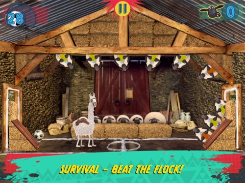 Play against the flock in 1-player mode or compete with friends in 2-player mode. With the Flock cheering from the side lines - will your llama be victorious?