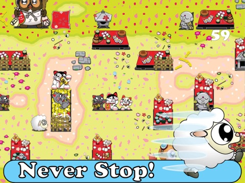 Swipe upward / downward at right timing to dodge obstacles, the sheep is running faster and faster, see how far can you lead the lost Mochi-Sheep without harmed!