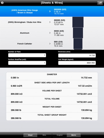 [sheet & wires], a superset application of our Gauge Finder application, is a fast weight, volume & mil calculator for sheets, flats & wires