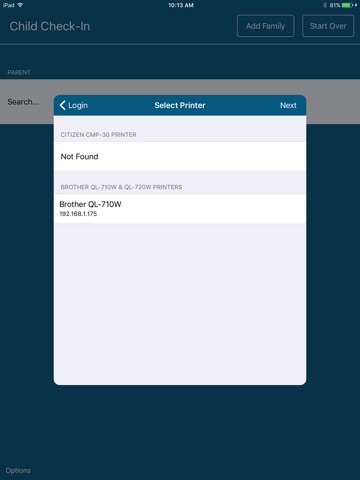 The Child Check-in app allows your volunteers to wirelessly check-in your churchs children at services and events. You can print labels to a bluetooth or wifi label printer. And its fully integrated with ShelbyNEXT ChMS too.