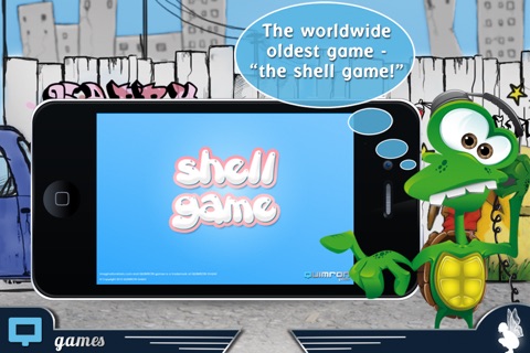 This app is a safe alternative to playing shell game in the street. It has a simple intuitive interface that even a little child understands without asking questions. The operator is a cute green turtle with a charming smile. The turtle will shuffle the shells quicker and quicker each time your child will guess the location of the pea.